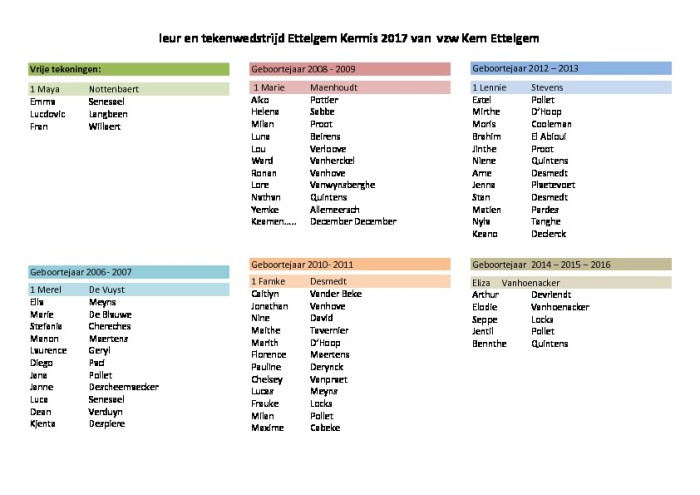 Resultaten wedstrijd Ettelgem Kermis 2017