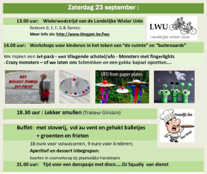 Je kan het volledige kermisprogramma raadplegen per dag: